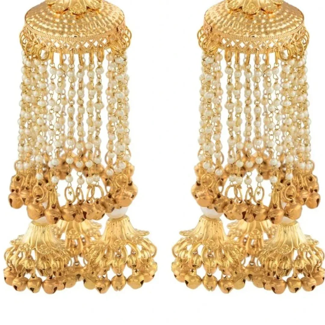 The wedding bells are ringing, laughter fills the air, and as you glance at your wrist, the Golden Minimalist Pearl Strings Bridal Kaleera glistens with quiet elegance. Handcrafted for brides who adore simplicity with a regal touch, this kaleera features a stunning large dome paired with three smaller domes, adorned with graceful pearl strings. Its golden finish radiates warmth, while soft ghungroos create a gentle melody with each movement—perfect for adding magic to your bridal steps. Despite its rich detailing, it’s surprisingly lightweight, ensuring you can celebrate from the first ritual to the last dance with ease. Customisable to your size and style, this kaleera is the perfect balance of tradition, beauty, and comfort.
