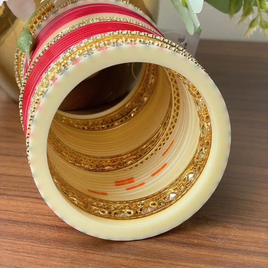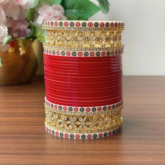 Premium Red Velvet Bridal Choora Box | Bangle Box With Floral Design - Rectangle