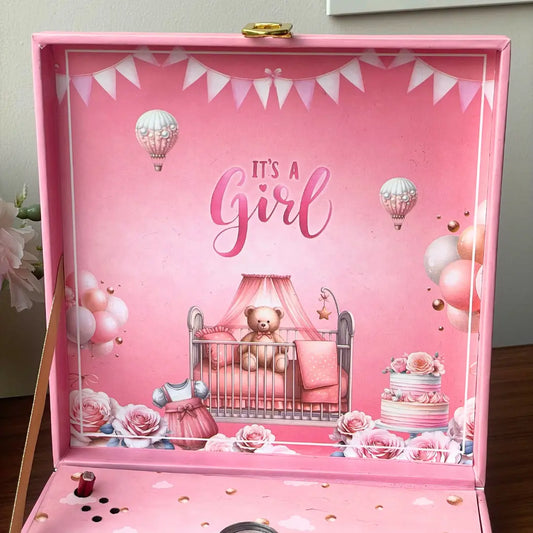 Musical Baby Girl Coin Box, UV Printed, Round Shape, Set of 5 Coins, (2 Gram Each), 999 Purity - Ready To Ship