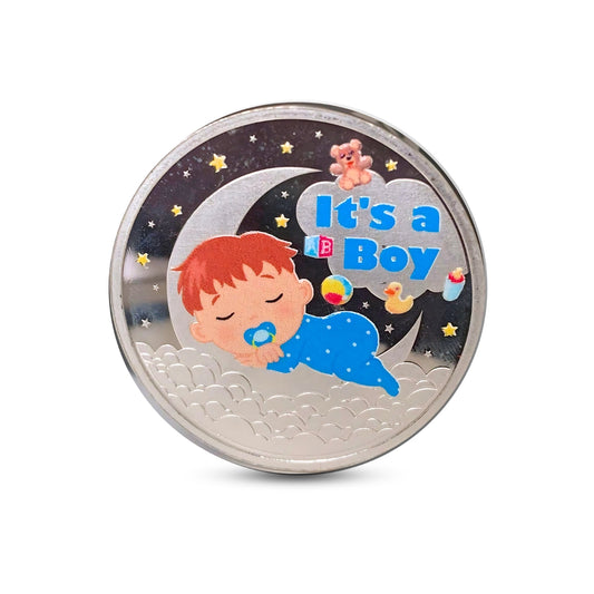 It's A Boy, UV Printed, Round, Single (Multiple Weights), 999 Purity Silver Coin - Ready To Ship