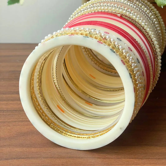 Semi Pearl Red Chuda | Chura | Chooda - With Pearl & Shimmer Bangles