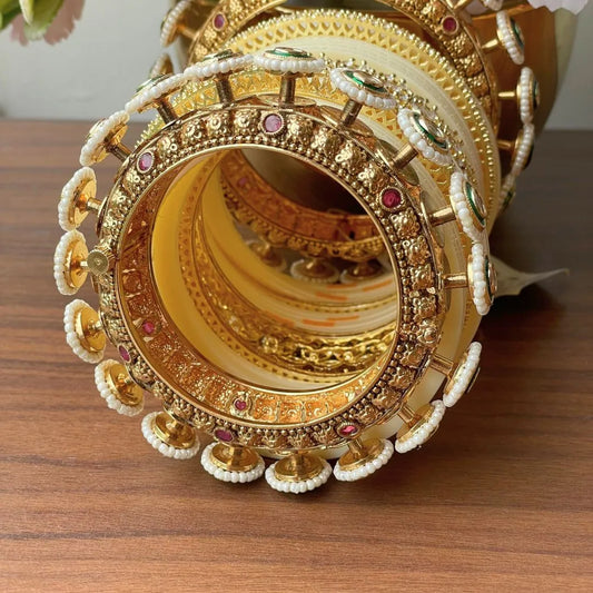 Semi Pearl Ivory/Beige Chuda | Chura | Chooda - With Petite Pacheli Kadas