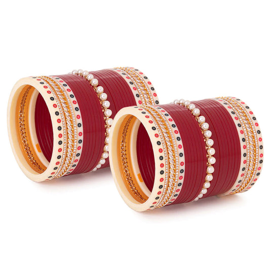 Semi Pearl Maroon Designer Wedding Chuda | Chura | Chooda