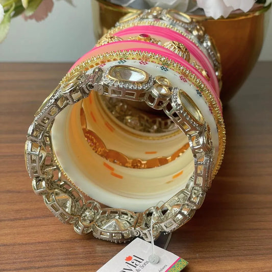 Semi Pearl Pink Chuda | Chura | Chooda - With Petite Pacheli Kadas