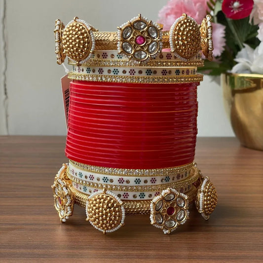 Semi Pearl Red Designer Chuda | Chura | Chooda