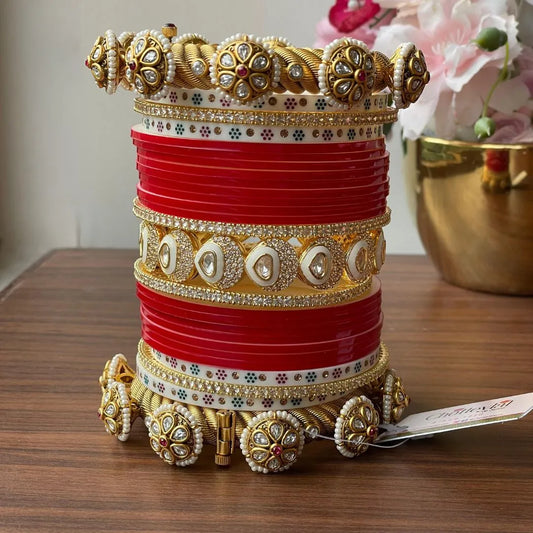 Pearl Classic Red Chooda - With OTT Polki Kadas