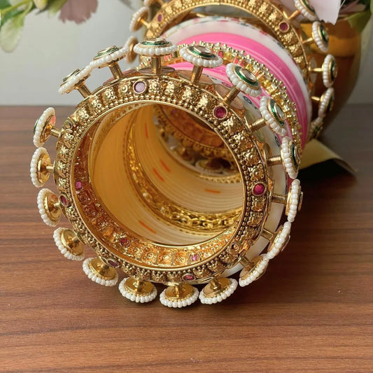 Semi Pearl Pink Chuda | Chura | Chooda - With OTT Polki Kadas