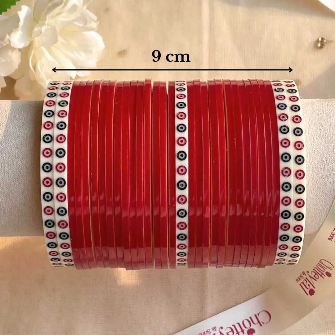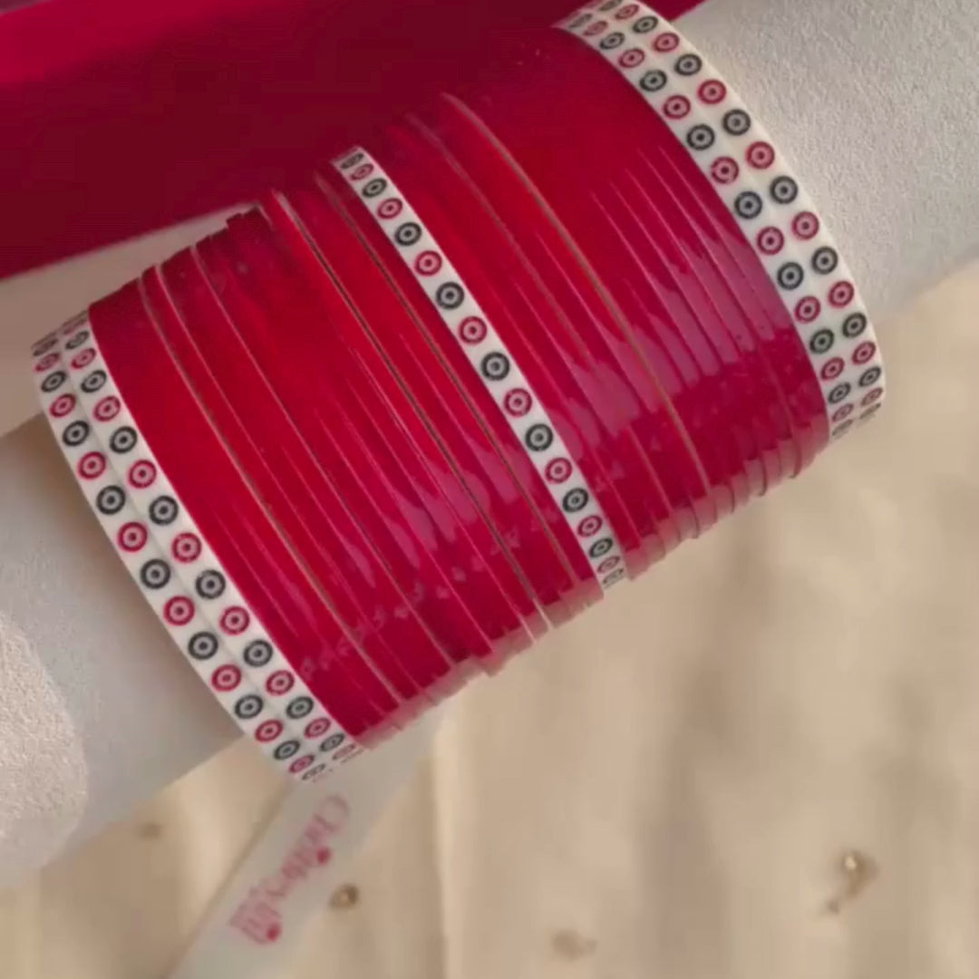Our Maroon Pure Pearl Chooda is thoughtfully designed using auspicious Shagun numbers such as 11, 15, 21, 25, and 31. The classic red and dot bangles create these lucky combinations, while any shimmer, diamond, or Kundan pieces—when added—act as graceful extras without affecting the traditional count.
