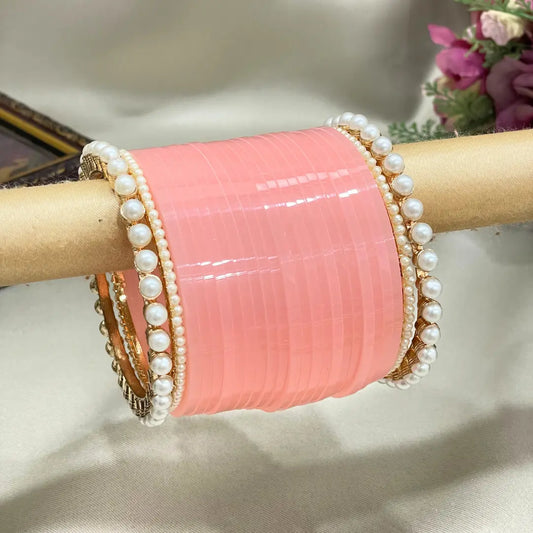 Contemporary Peach Tone Pearl Luxe Chura – Modern Style