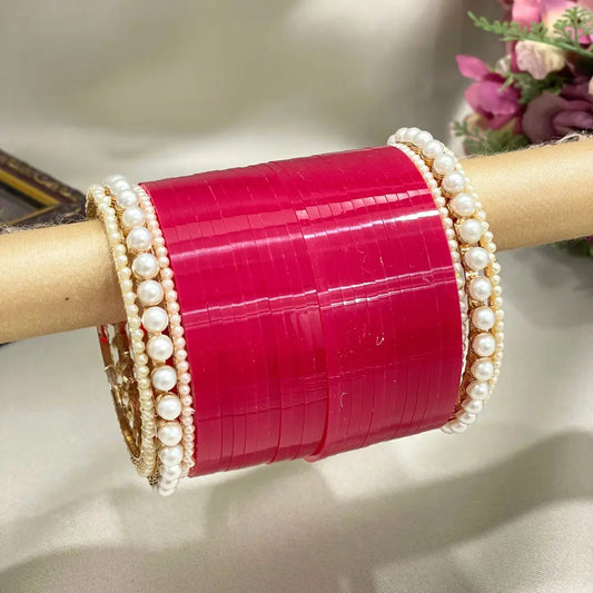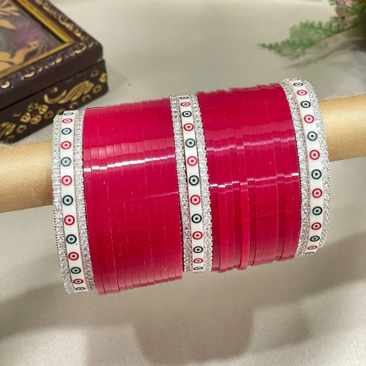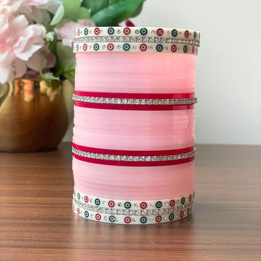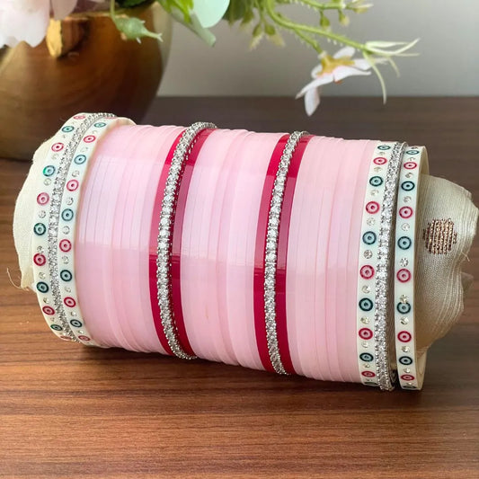 Contemporary Baby Pink Punjabi Chooda with AD Bangles