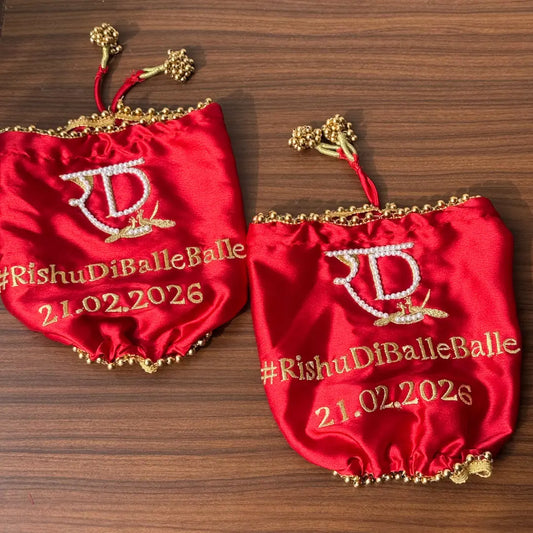 Red Satin Chooda Cover With Golden Beads - With Initials Customisation