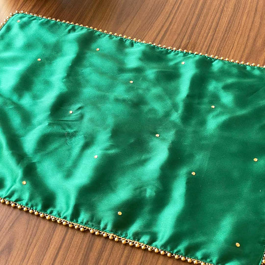 Green Rectangular Placement Mats With Golden Bead Border - Customize Om/Ek Onkar Logo