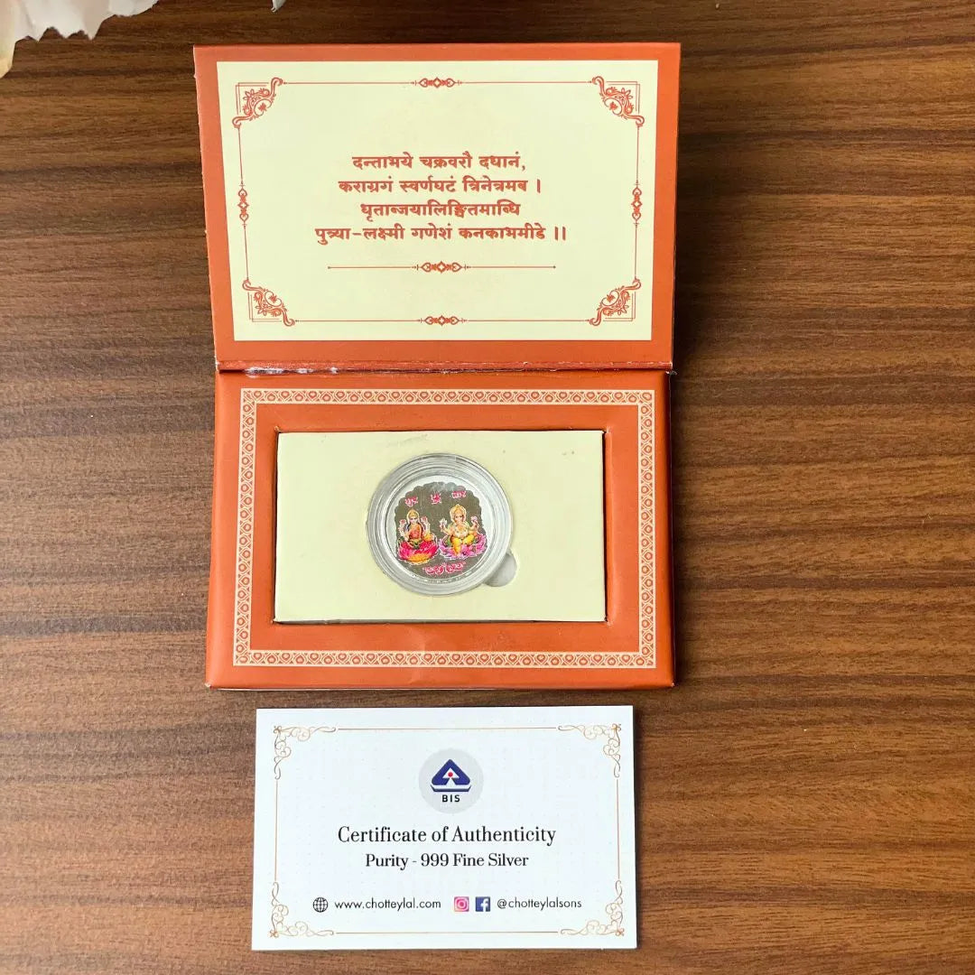 The Lakshmi Ganesh Ji coin is pure silver with proper weight. Very auspicious.
