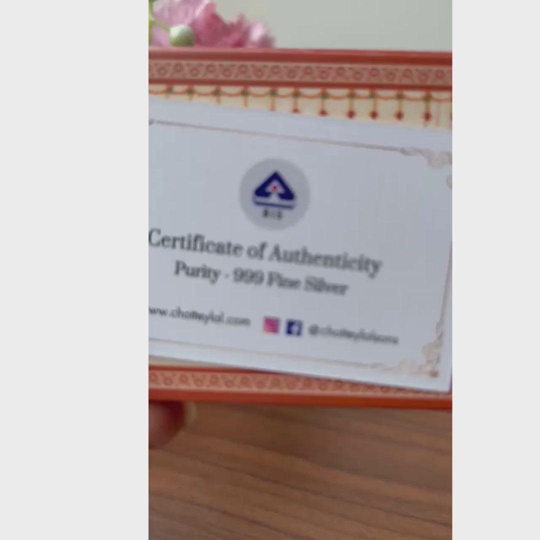 CERTIFIED AUTHENTICITY – Each piece comes with a guarantee of 999 purity and is certified for authenticity. When you choose Chotteylal & Sons, you gift not just silver, but peace of mind.