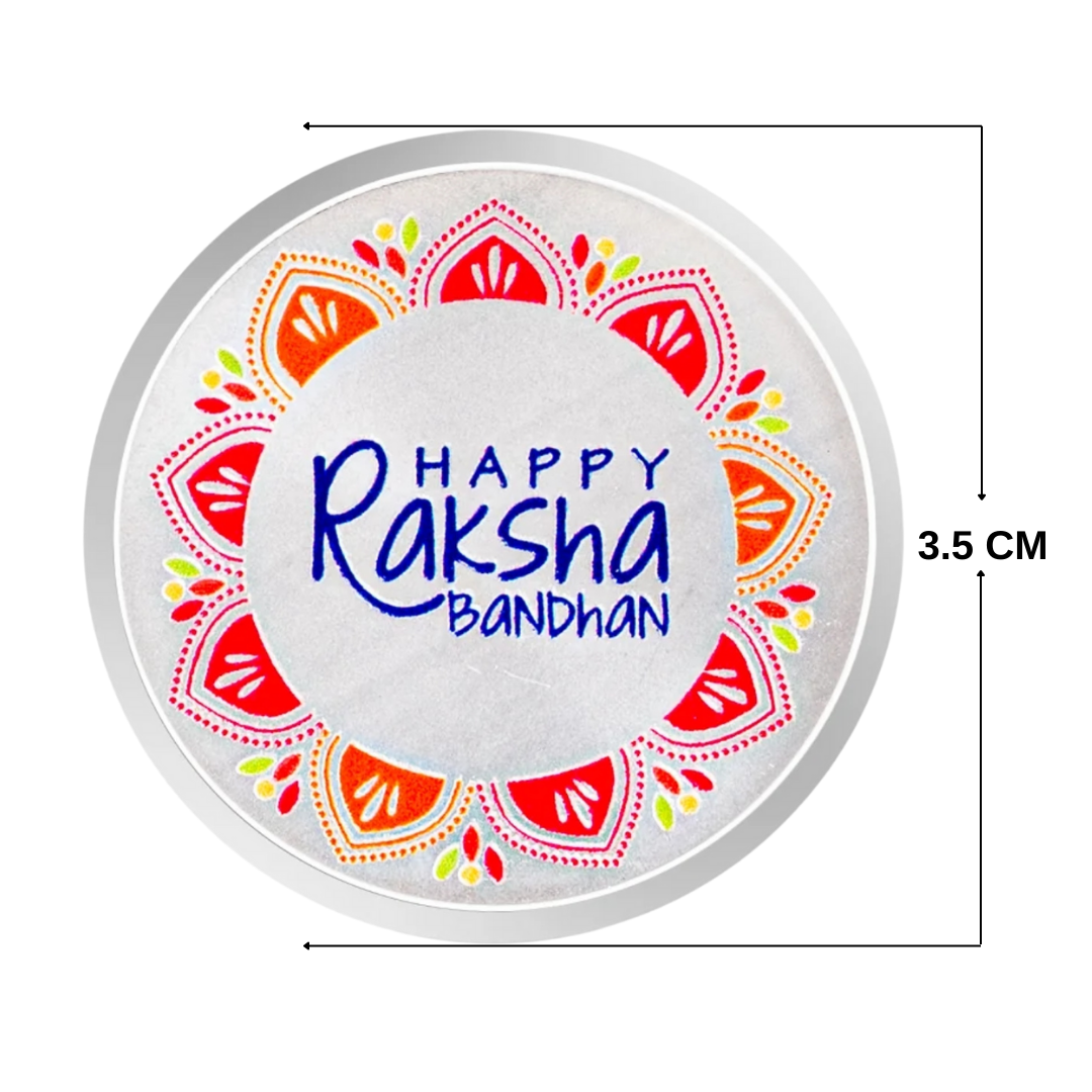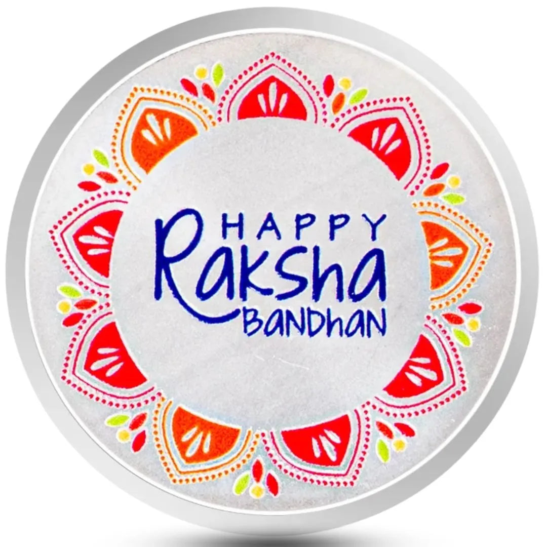 Happy Raksha Bandhan Box, 10gm UV Print Silver Coin With Rakhi Card - 999 Purity Silver Coin