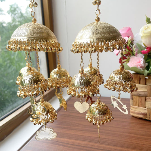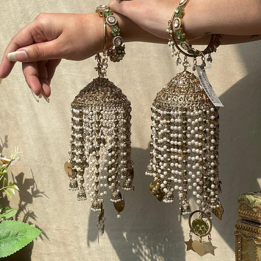 Golden Sleek Dome With Jhumkis Bridal Kaleera - Customizable With Unique Charms
