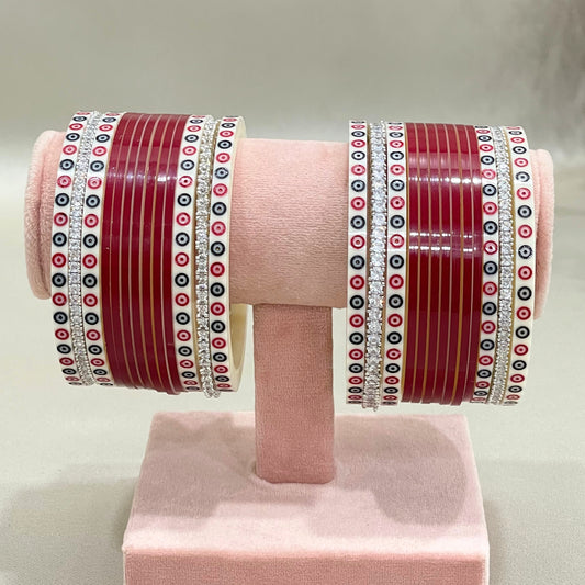 Semi Pearl Maroon Designer Wedding Chuda | Chura | Chooda
