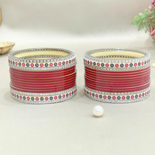 Pure Pearl Silver Shimmer Dark Red Chooda