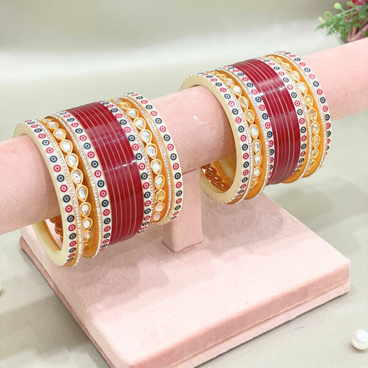 Semi Pearl Maroon Designer Wedding Chuda | Chura | Chooda