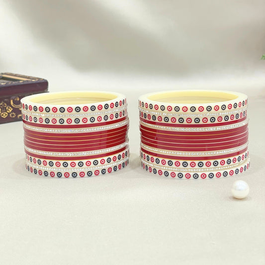 Semi Pearl Maroon Designer Wedding Chuda | Chura | Chooda
