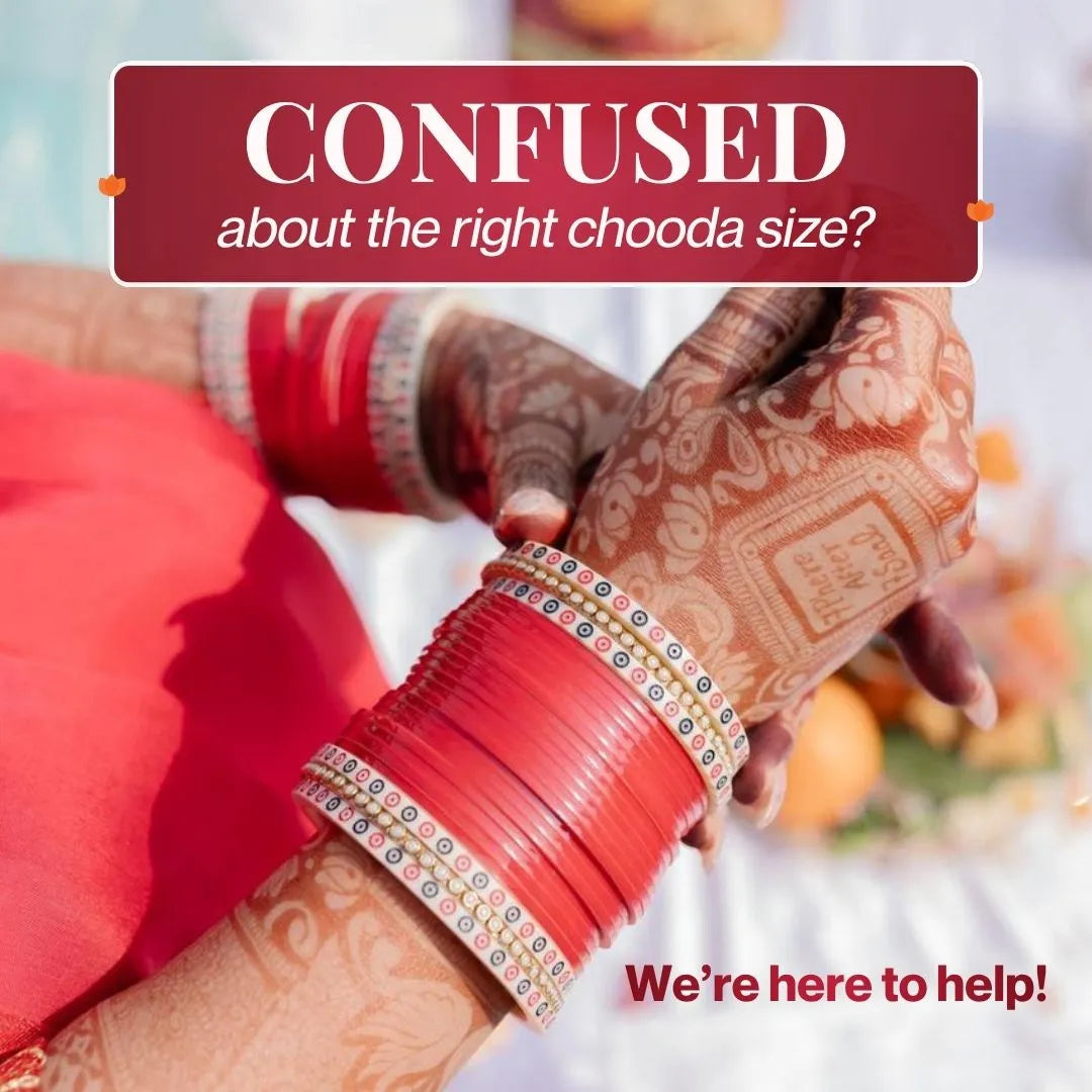 Once you know your size, you can confidently order your iconic Chotteylal Chooda. Every Chooda is custom-made for each bride, which is why orders are non-returnable. Using the sizer set ensures you get the perfect fit and enjoy a stress-free shopping experience.