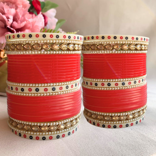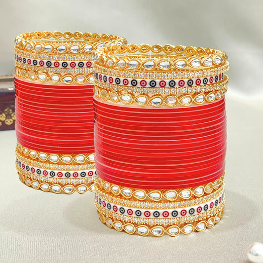 Pure Pearl Classic Kundan Diamond Red Chooda Set of 21