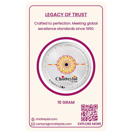 Rakhi on Hand, Silver Coin 10 Gram, Blister Card, 999 Purity Silver Coin - Ready To Ship