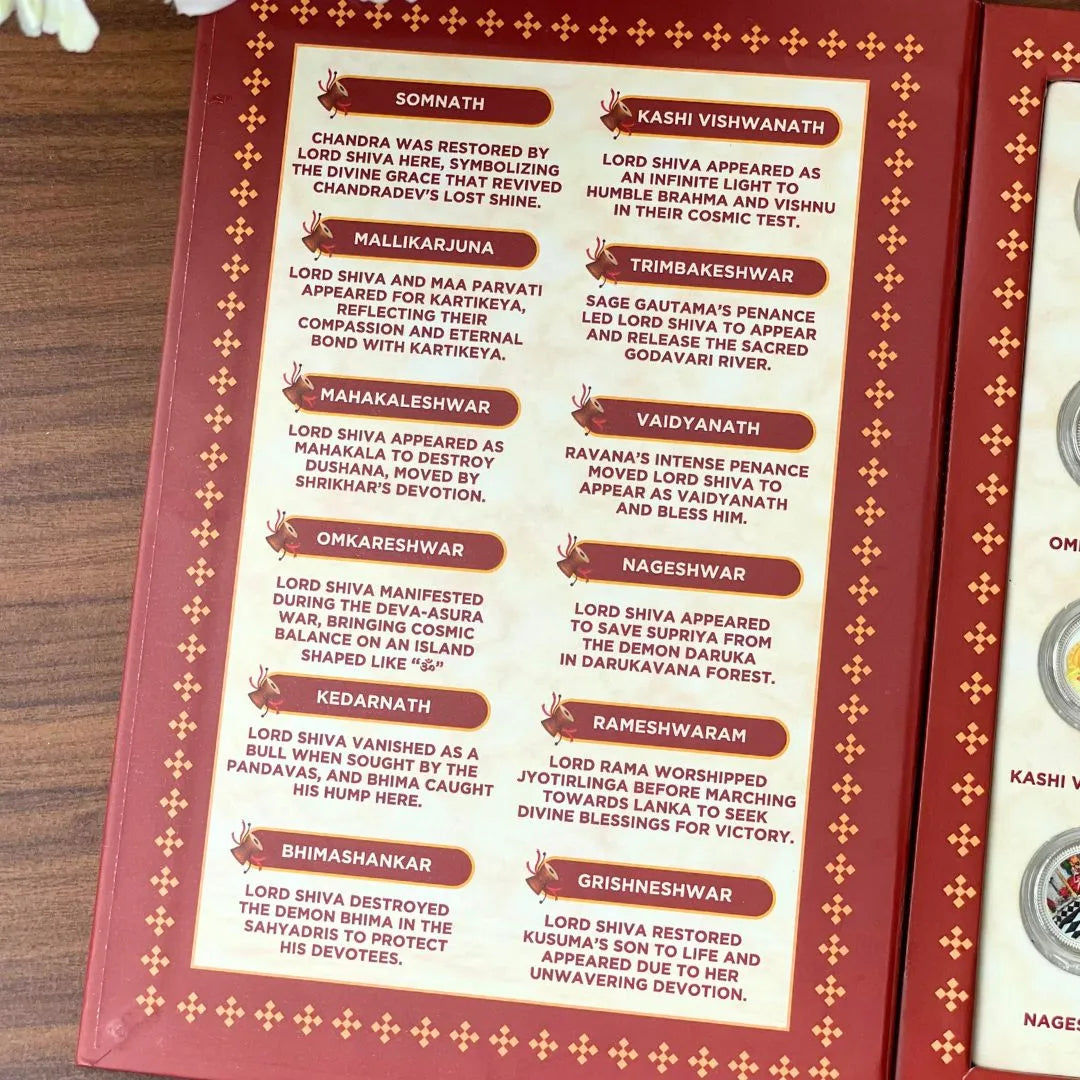 Each coin in this sacred set is a tribute to the 12 revered Jyotirlingas of Lord Shiva, intricately UV printed and sealed in a premium folder box. For those who follow the Shaiva or Jain traditions, this becomes not only a possession of value but a spiritual heirloom that resonates with the power of faith. Designed for devotees, collectors, and spiritual households, this box serves as a symbol of protection, purity, and inner strength.