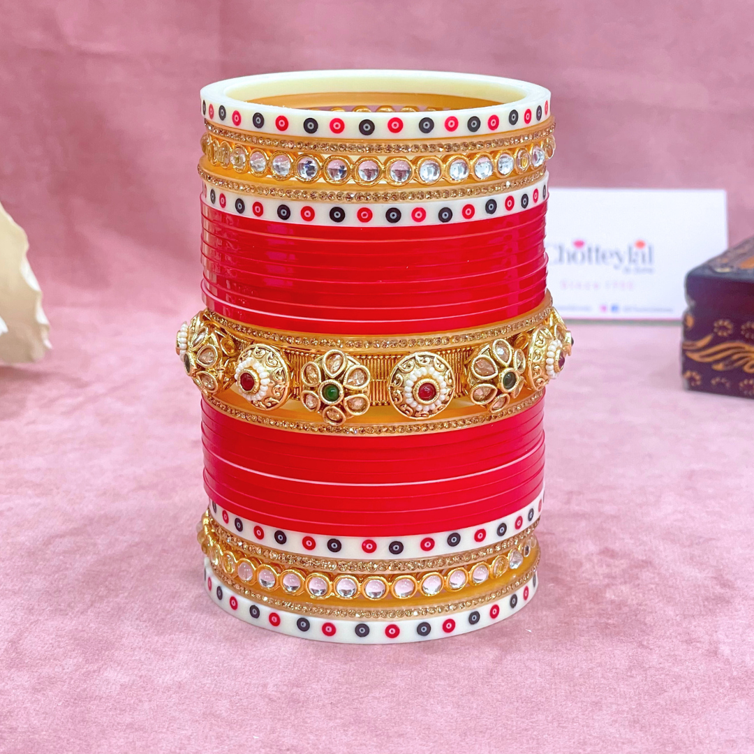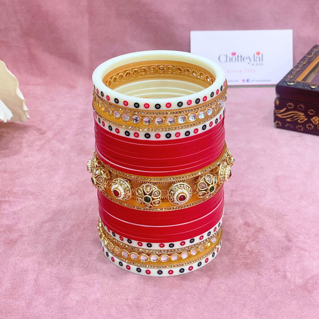 Semi Pearl Red Designer Chuda | Chura | Chooda
