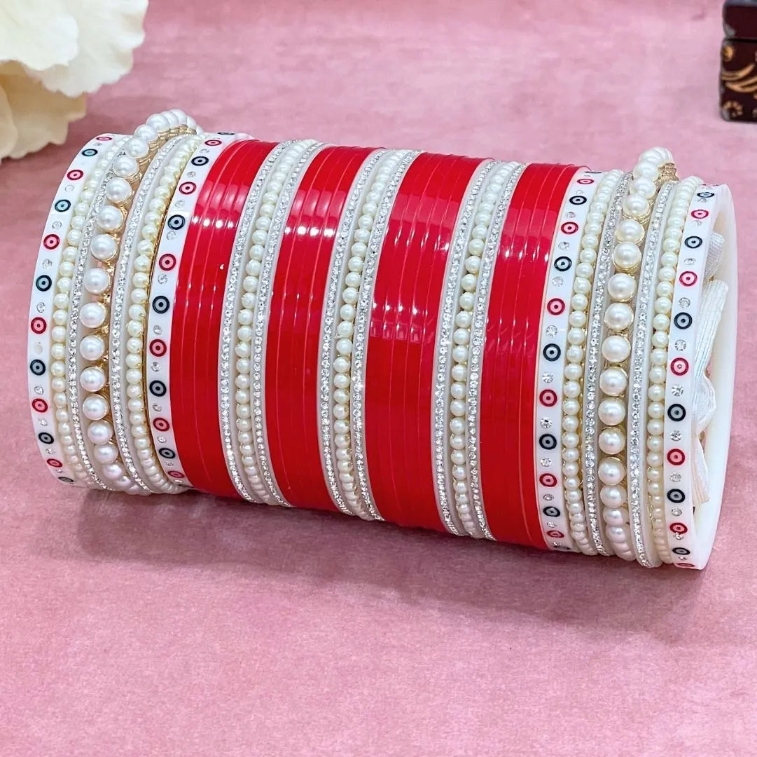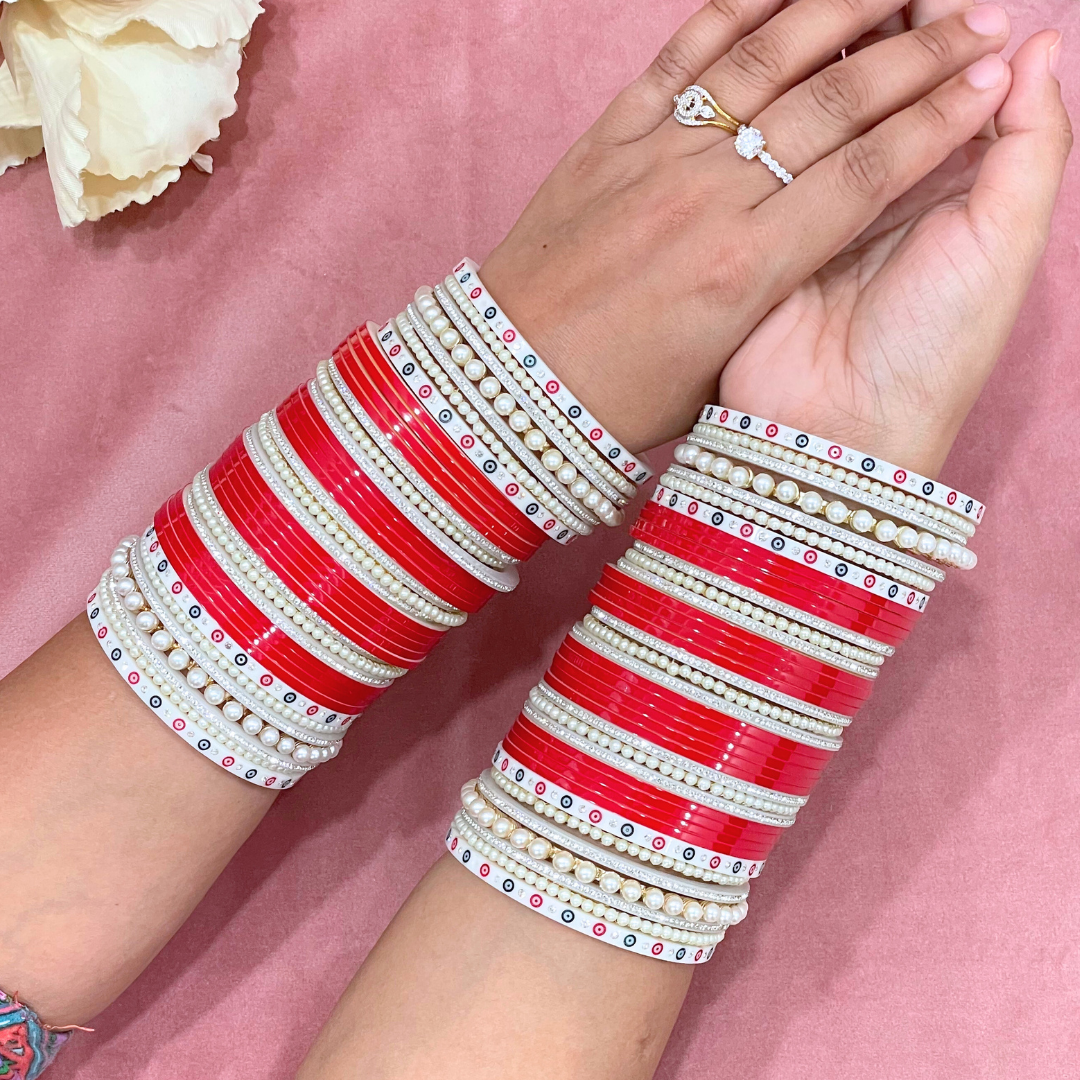 Semi Pearl Red Designer Chuda | Chura | Chooda