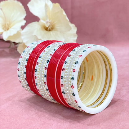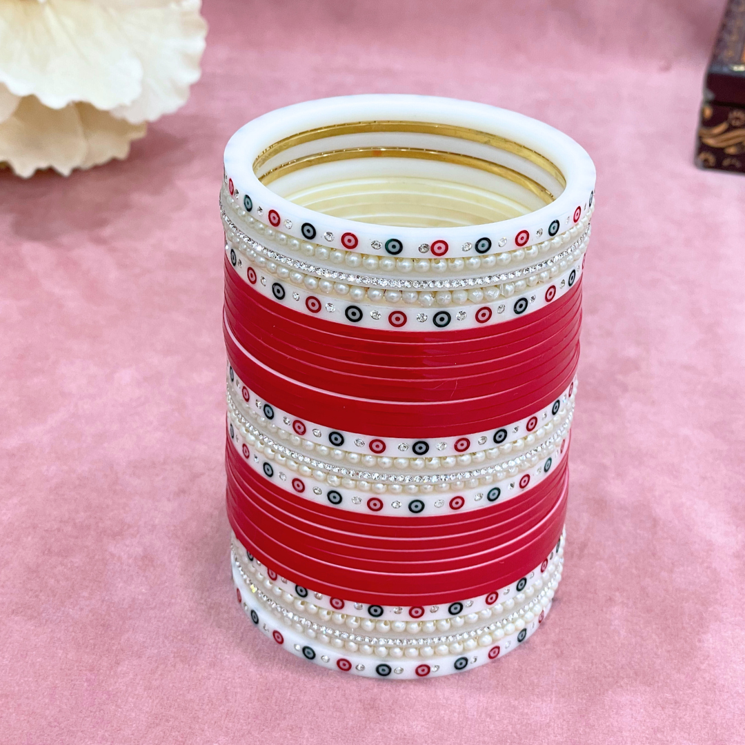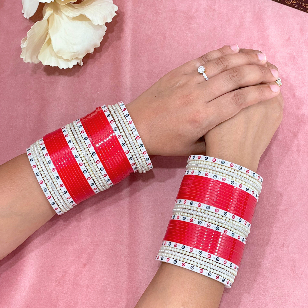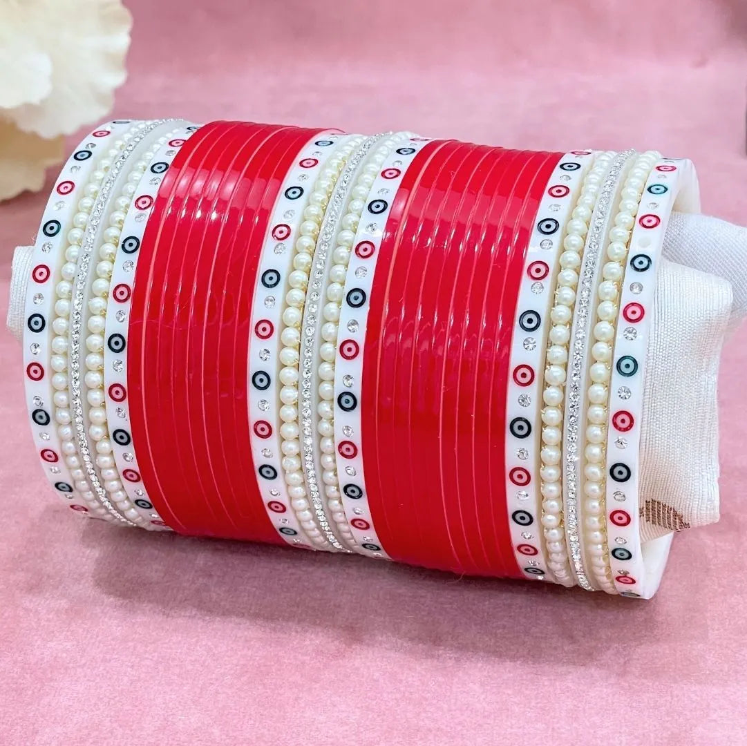 Each set of our Semi Pearl Red Designer Chuda includes:
