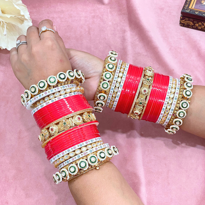 - Shagun Number Sets: Our Red Chooda sets are available in auspicious counts of 11, 15, 21, 25, and 31, inviting prosperity, good fortune, and blessings to your new beginnings.