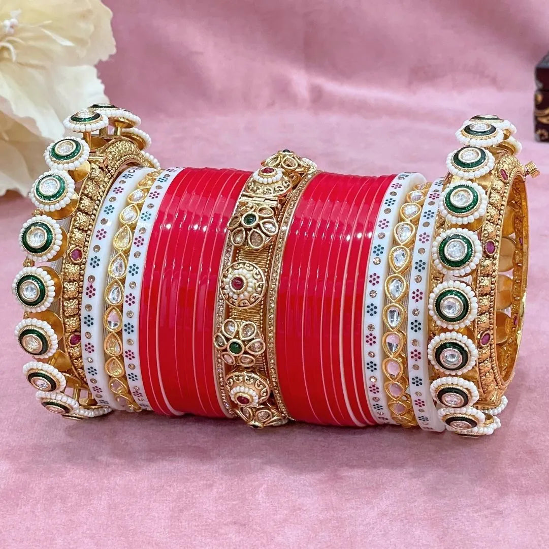 Semi Pearl Red Designer Chuda | Chura | Chooda