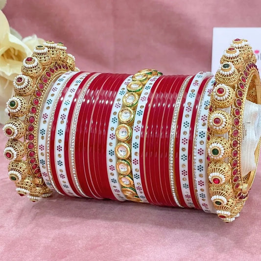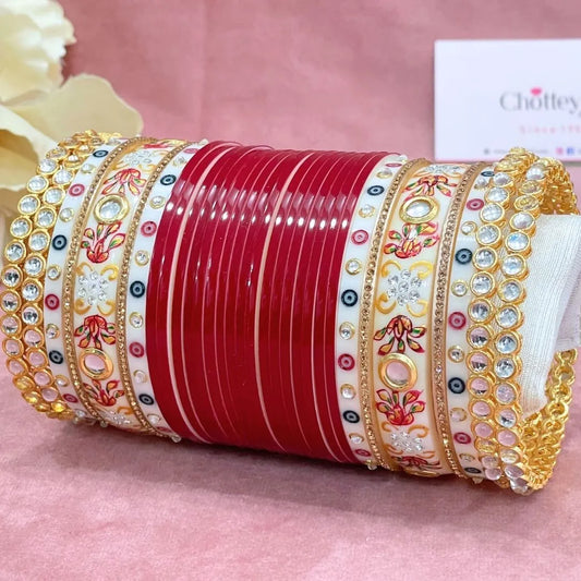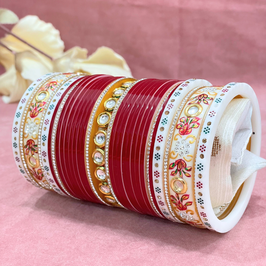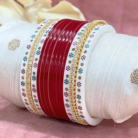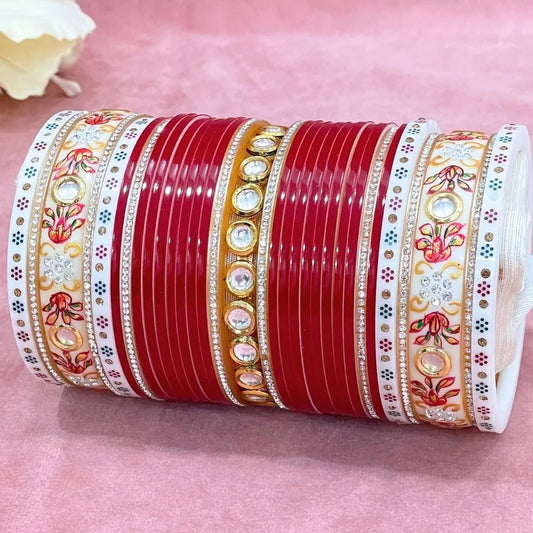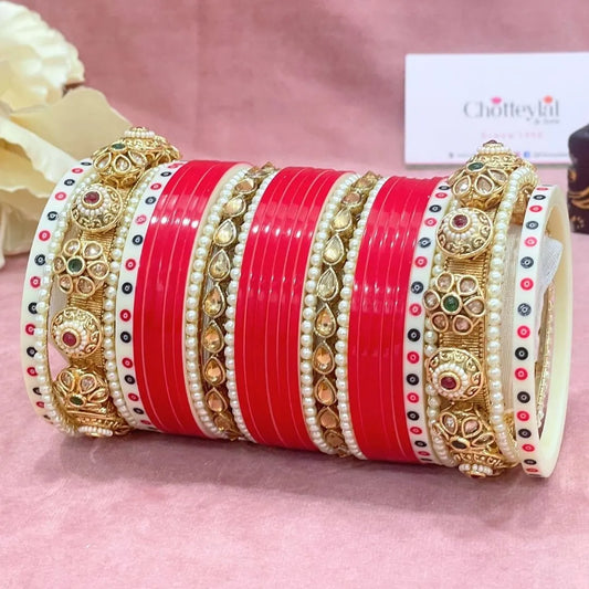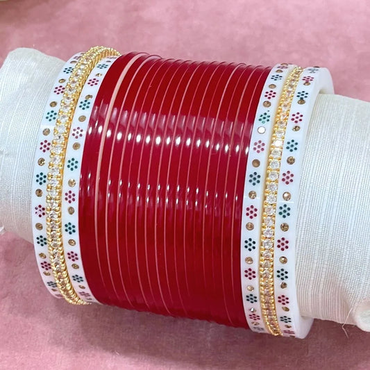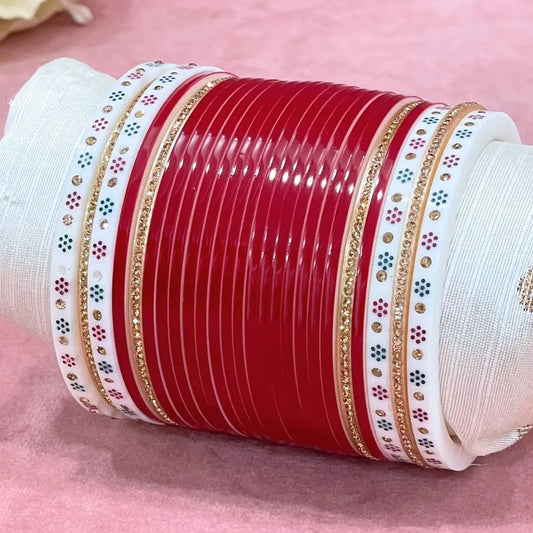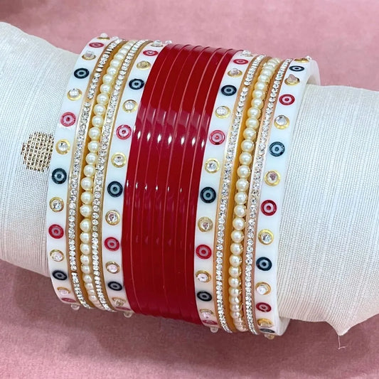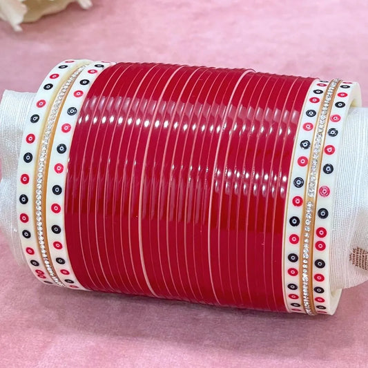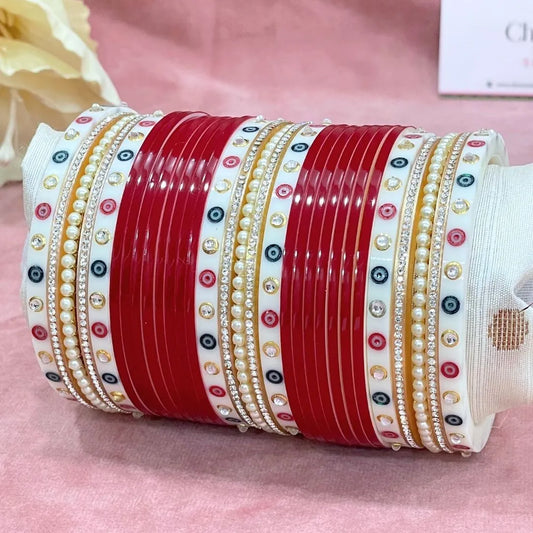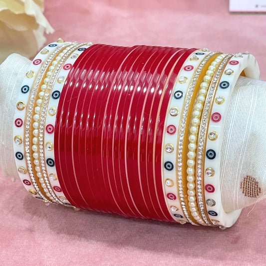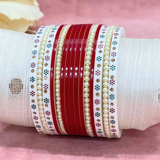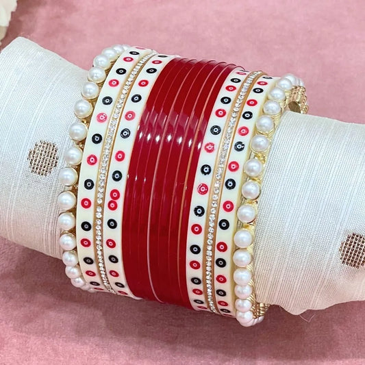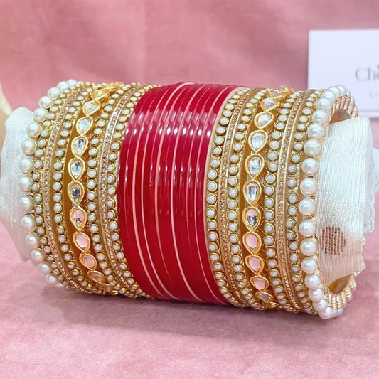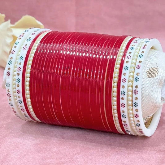 Semi Pearl Red Designer Chuda | Chura | Chooda