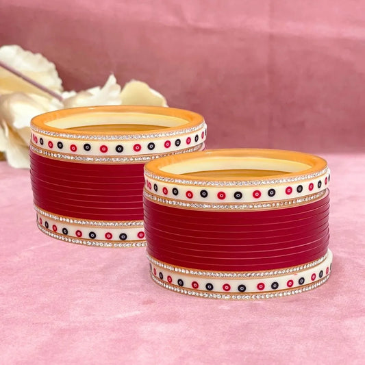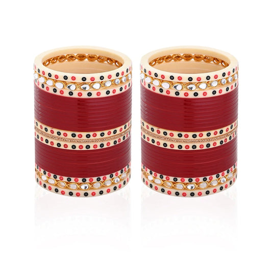 Semi Pearl Red Maroon Designer Chuda | Chura | Chooda