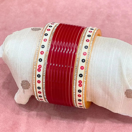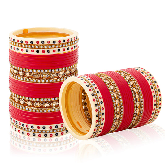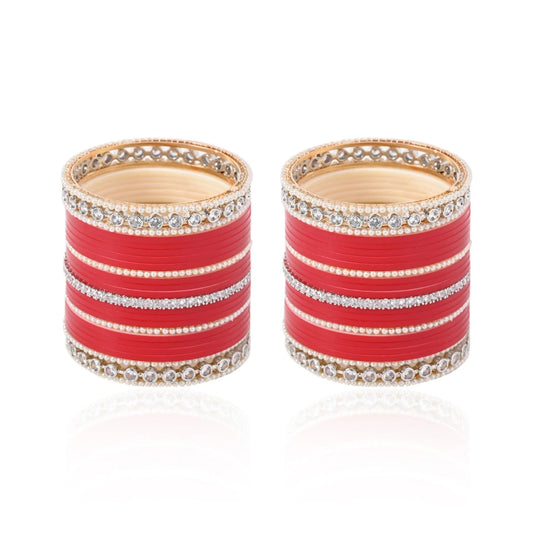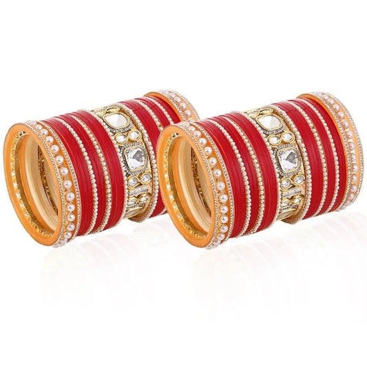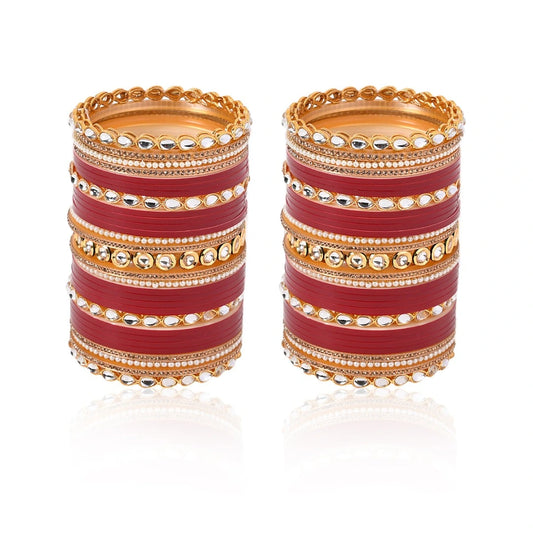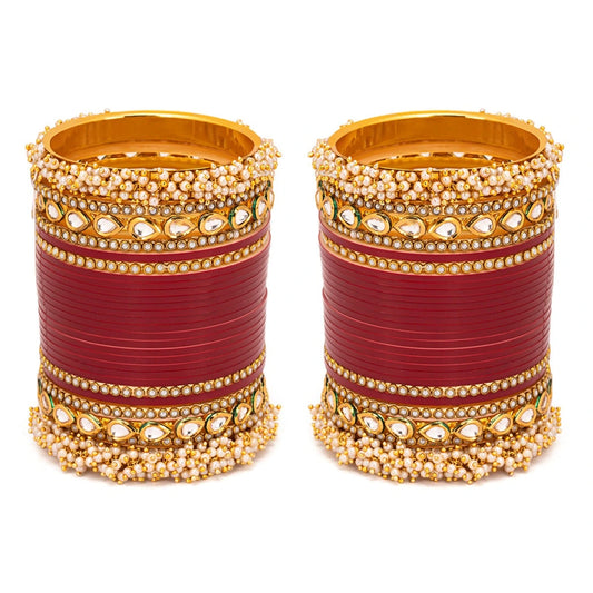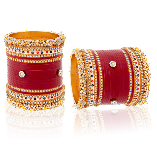 Semi Pearl Classic Kundan Red Chuda | Chura | Chooda
