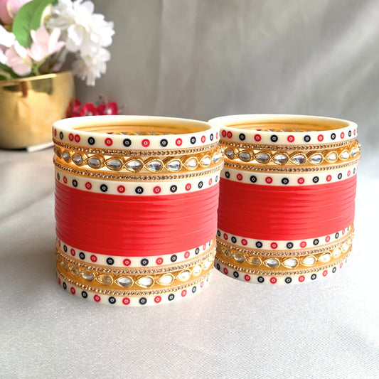 Semi Pearl Classic Kundan Red Chuda | Chura | Chooda
