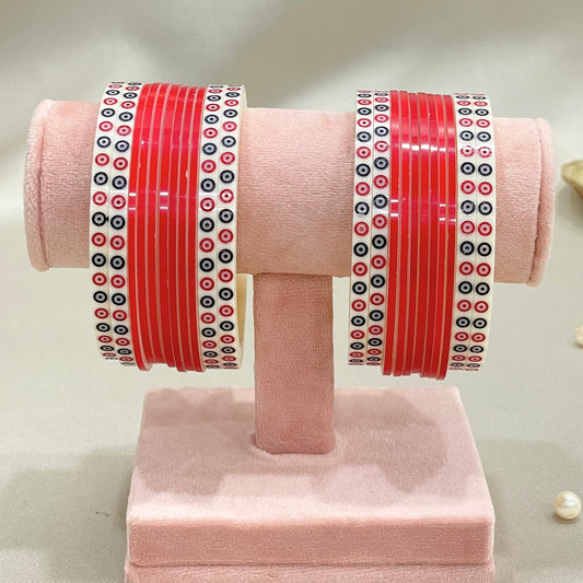 Radiant Bridal Chuda | Chura | Chooda : Red Dot Bangles with Shimmer White Bangles