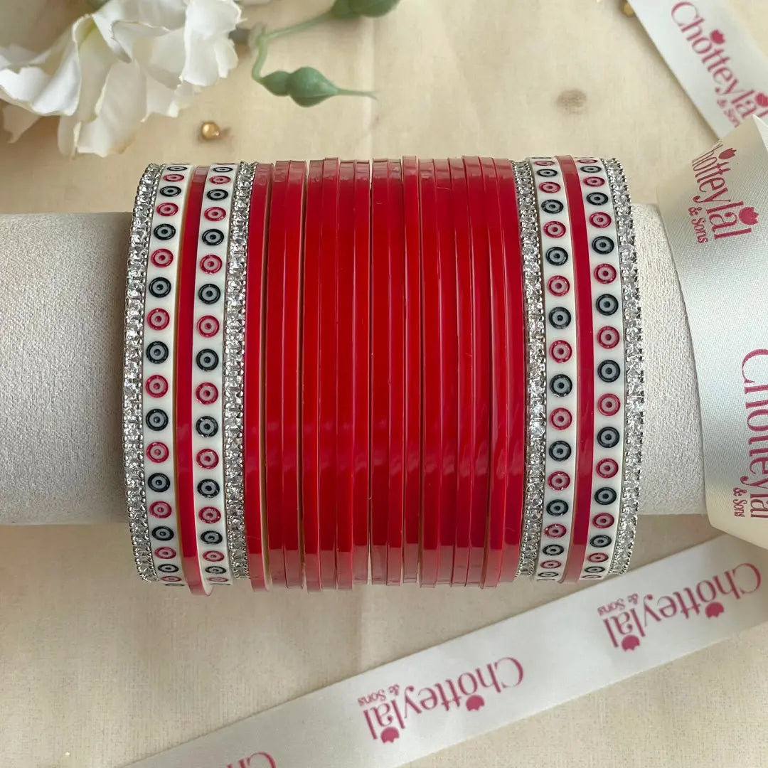 The deep dark red color complements lehengas in shades of maroon, red, and gold, creating a perfect harmony for your wedding ensemble. Recognized globally, Chotteylal & Sons is the ultimate name for perfect chooda, offering brides the finest quality and design that turns every wedding moment into a cherished memory.