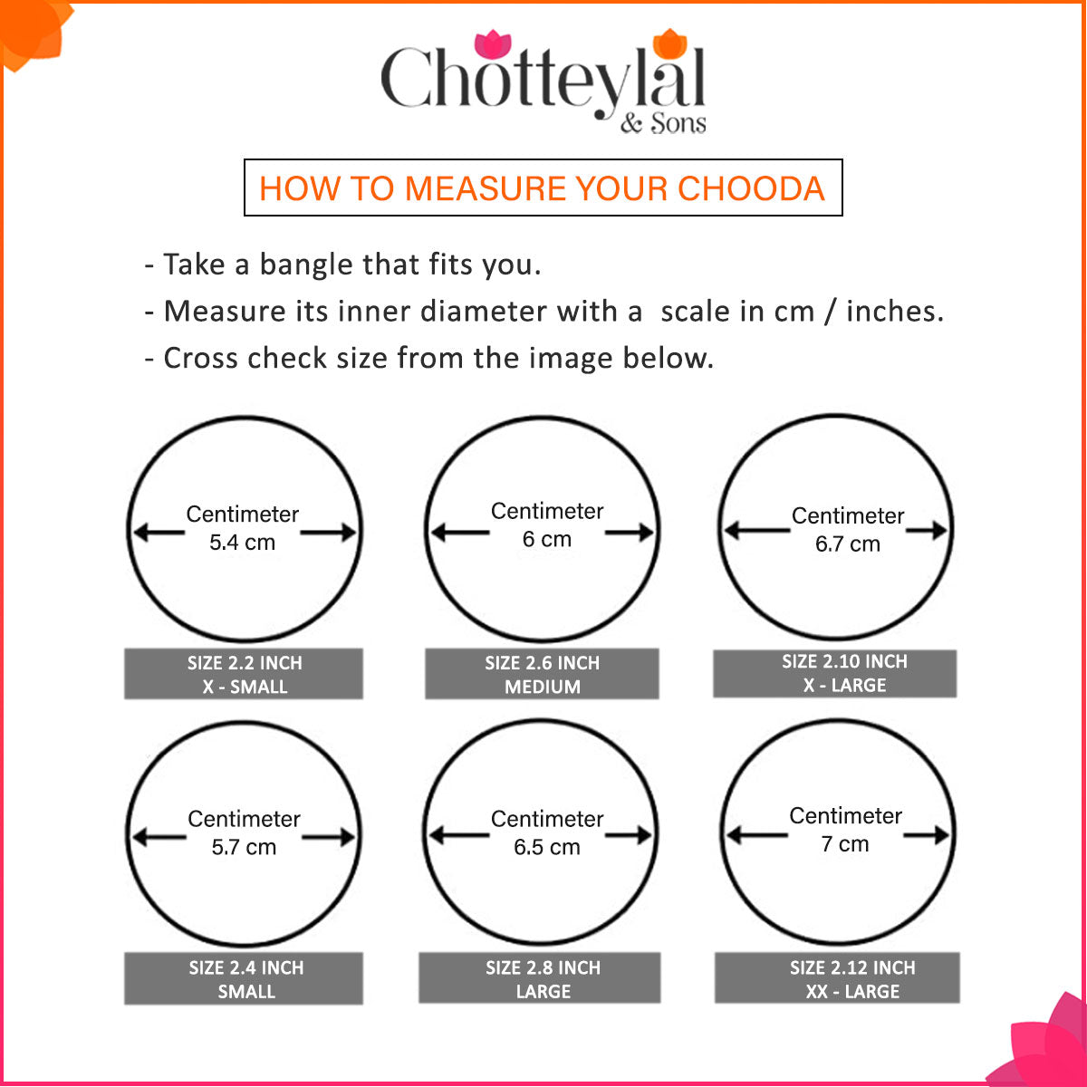 • Length of Chuda | Chura | Chooda : A perfect fit with a 8.5-9.5 CM Chuda | Chura | Chooda Length.