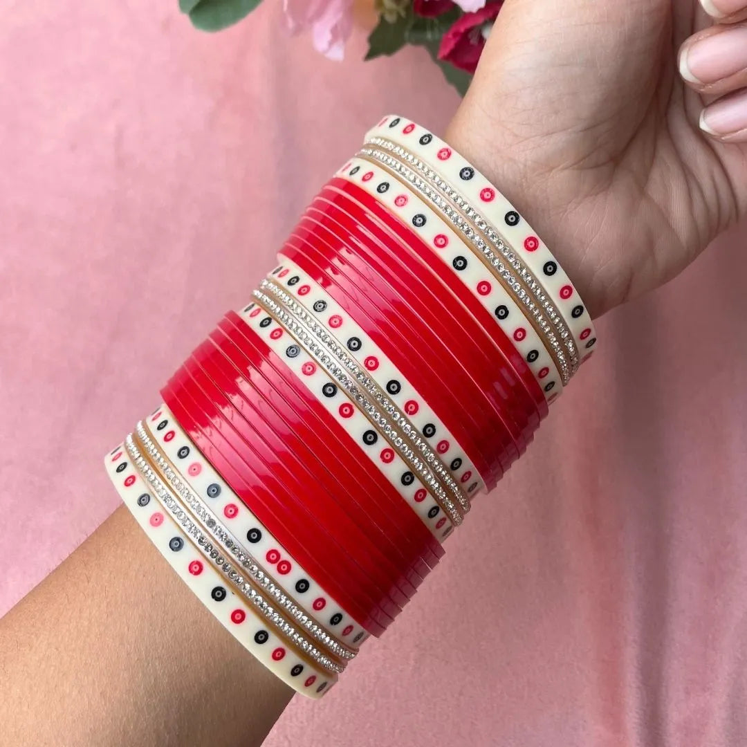 Semi Pearl Red Designer Wedding Chuda | Chura | Chooda
