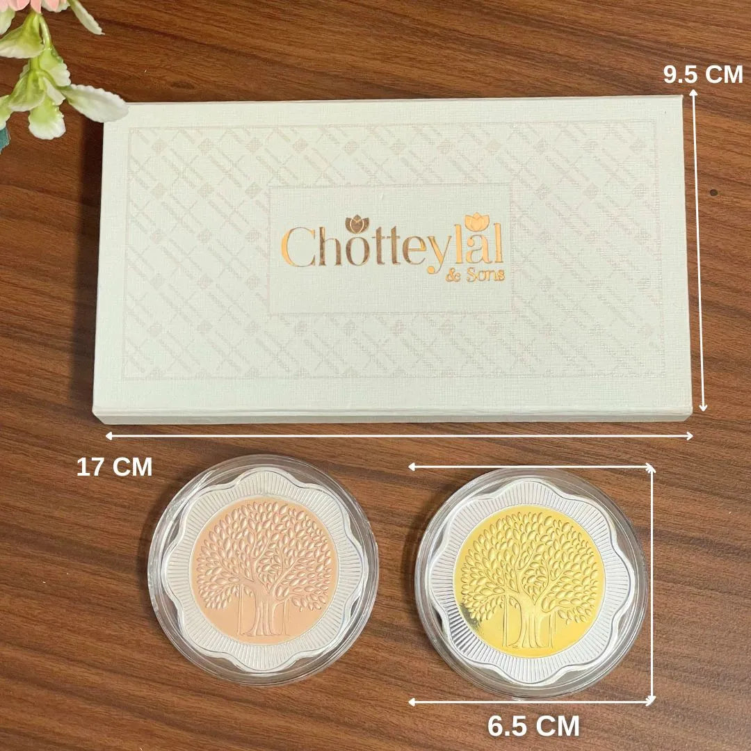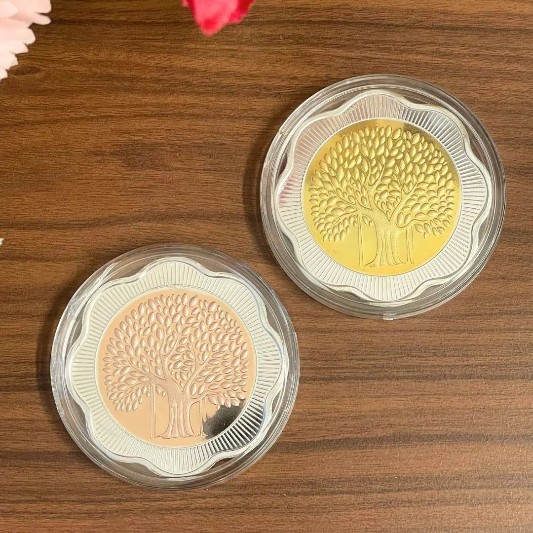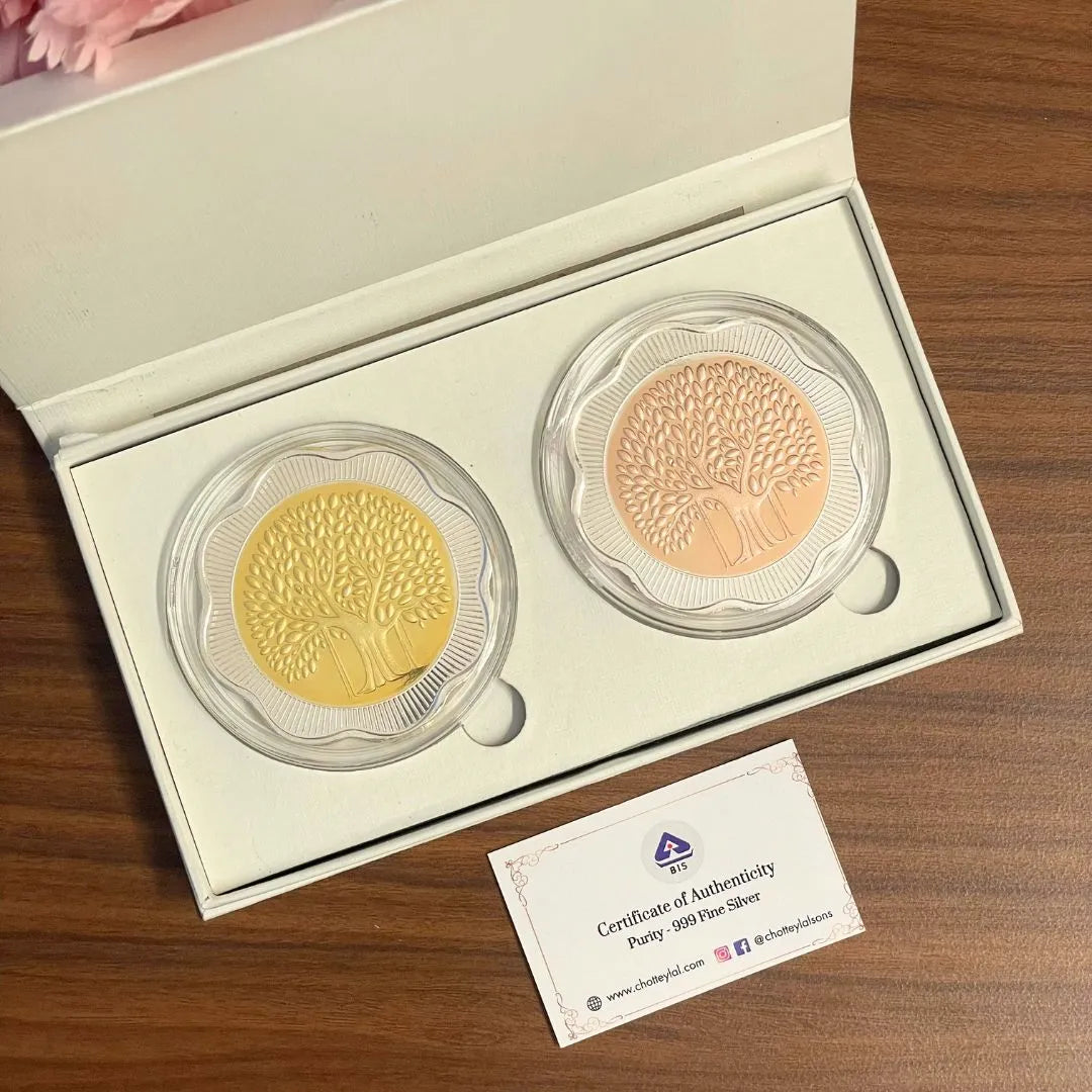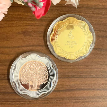 Banyan Tree, Gold & Silver, Floral Shape, Set of 2 (50 Gram Each), 999 Purity Silver Coin - Ready To Ship