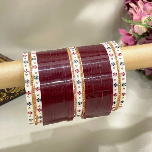 Contemporary Maroon Floral Fantasy Chooda with Shimmer Accents