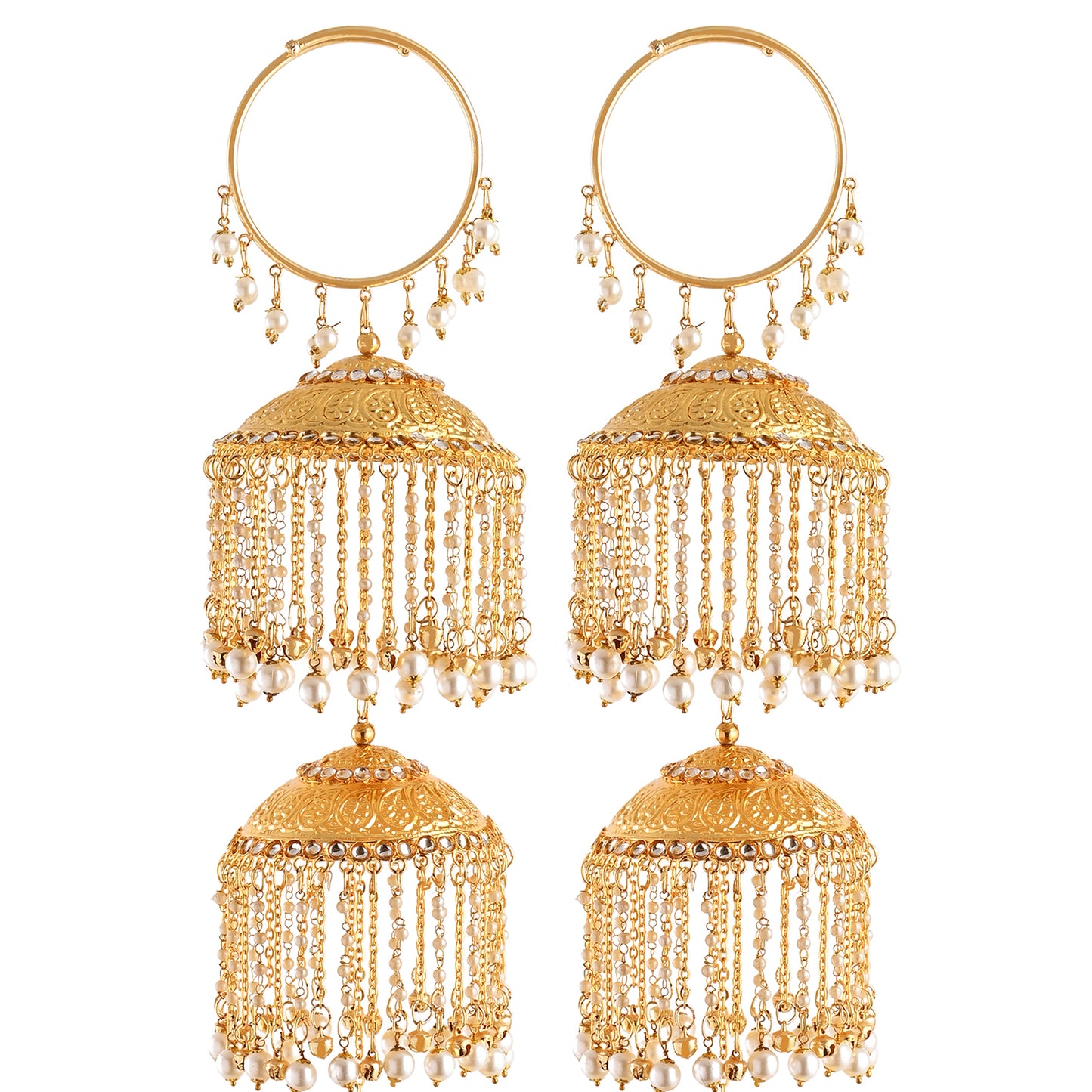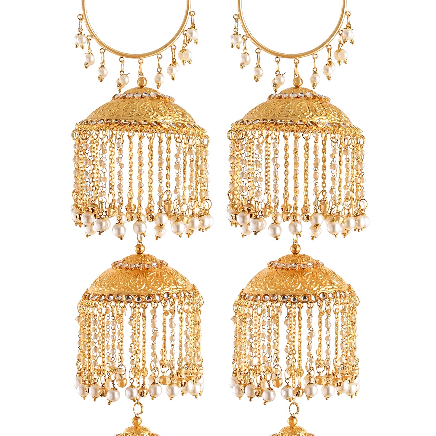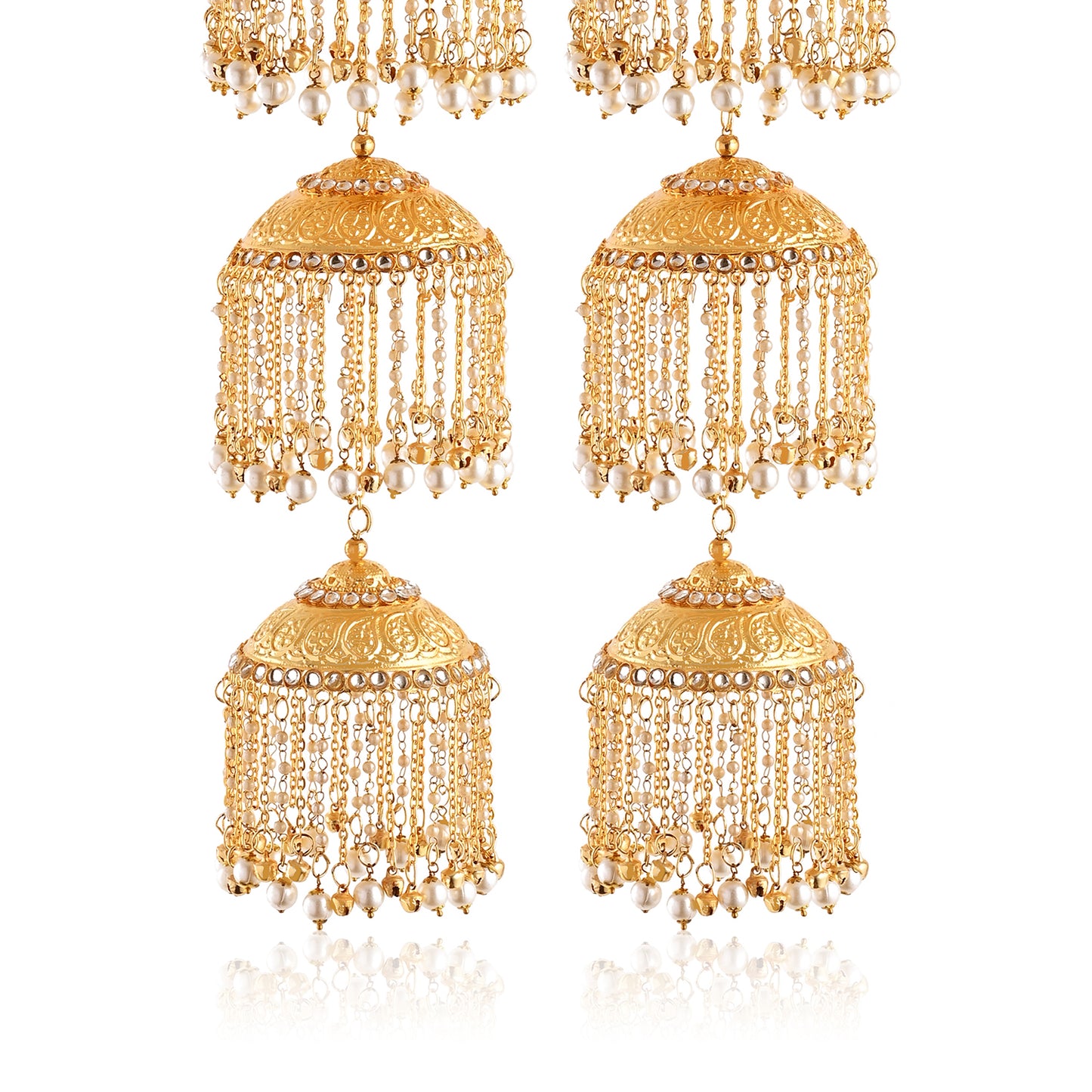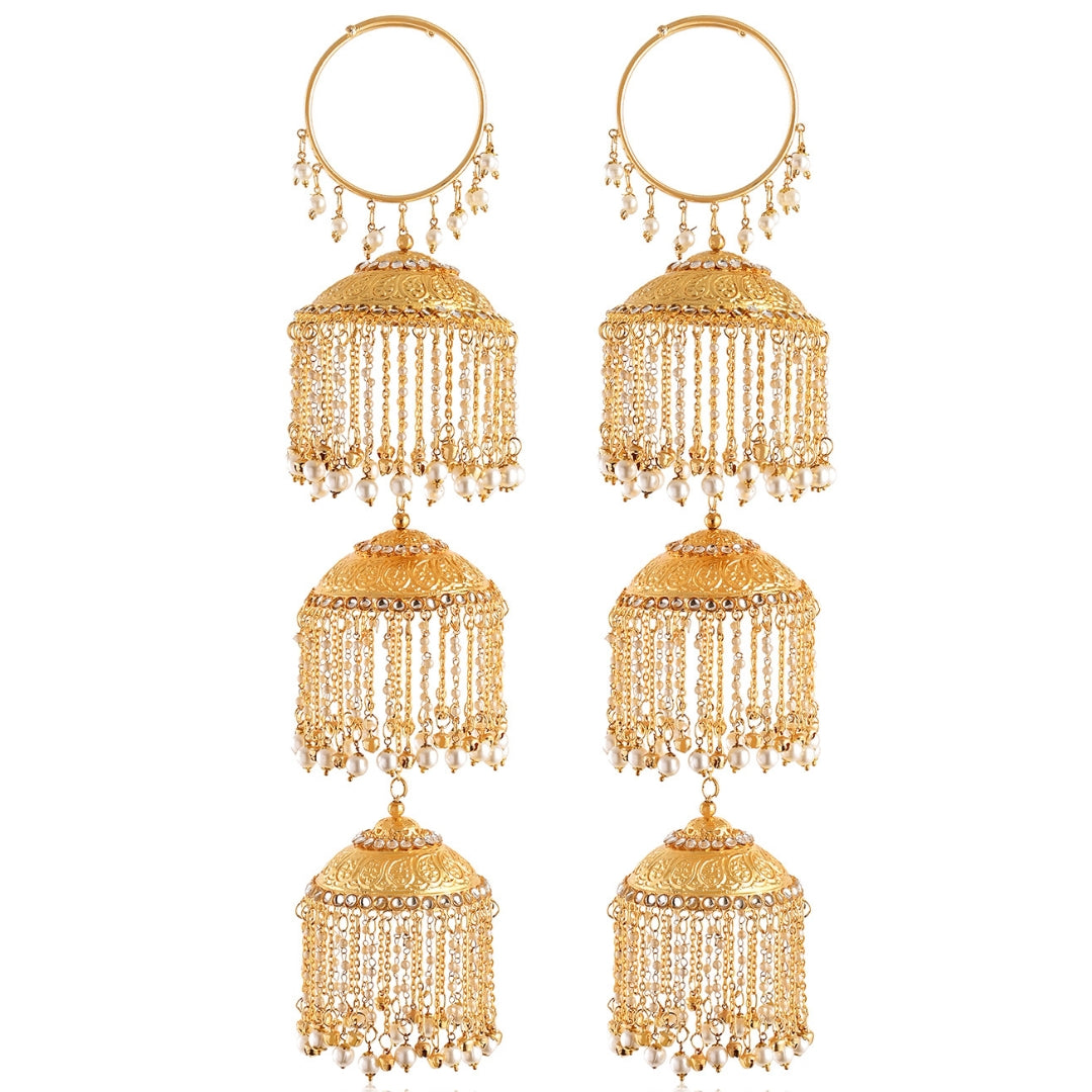 Punjabi Wedding Kalire Multi-Tier Gold Jhumka Style