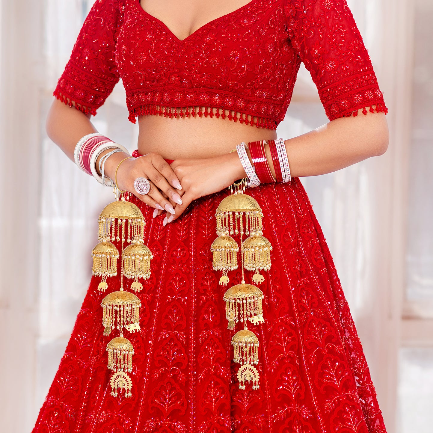 Kaleeras are delicate pieces handcrafted with intricate detailing. Always handle them gently to avoid bending or breaking.