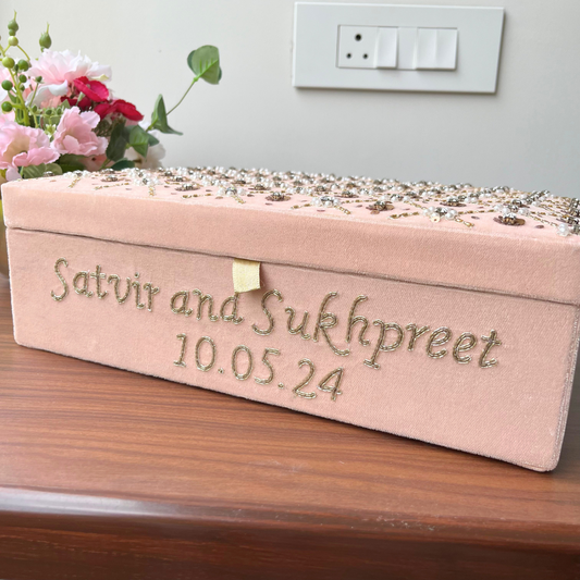 To preserve the integrity and longevity of your Chooda, it must be kept away from perfumes, sanitizers, and other chemical-based substances. This is particularly crucial for Chooda sets containing metal bangles, as metals may react adversely to harmful chemicals, leading to discoloration or structural weakening.