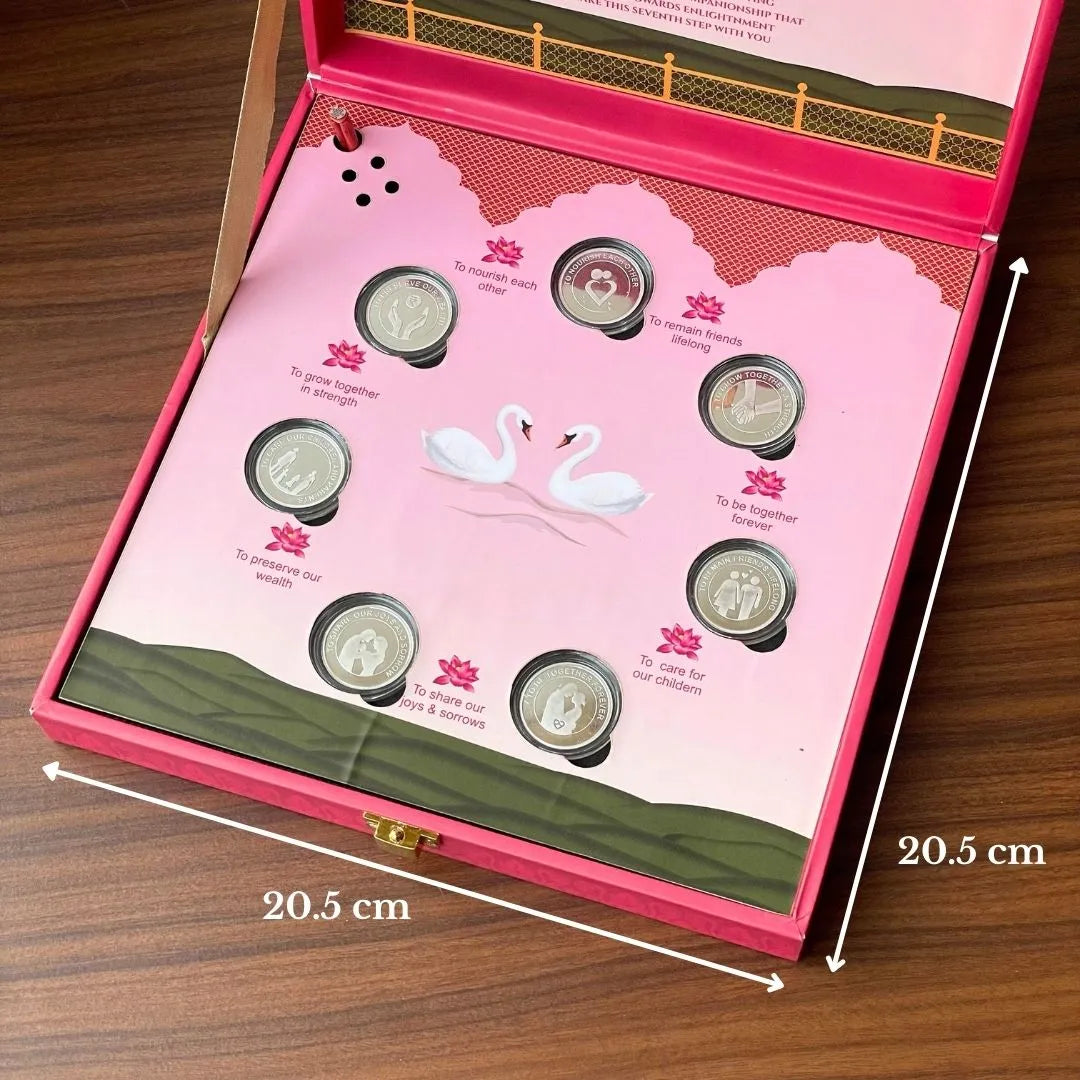 Each coin represents one of the 7 vows taken by the bride and groom, making it a meaningful wedding or anniversary gift that celebrates tradition while leaving behind a legacy. The musical feature transforms it from just a keepsake into a cherished heirloom.
