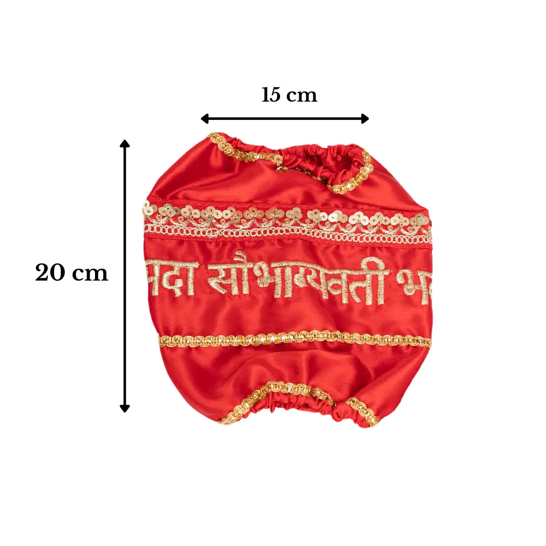 Crimson Red Satin Chooda Cover With Sada Saubhagyavati Embroidered & Lace Work