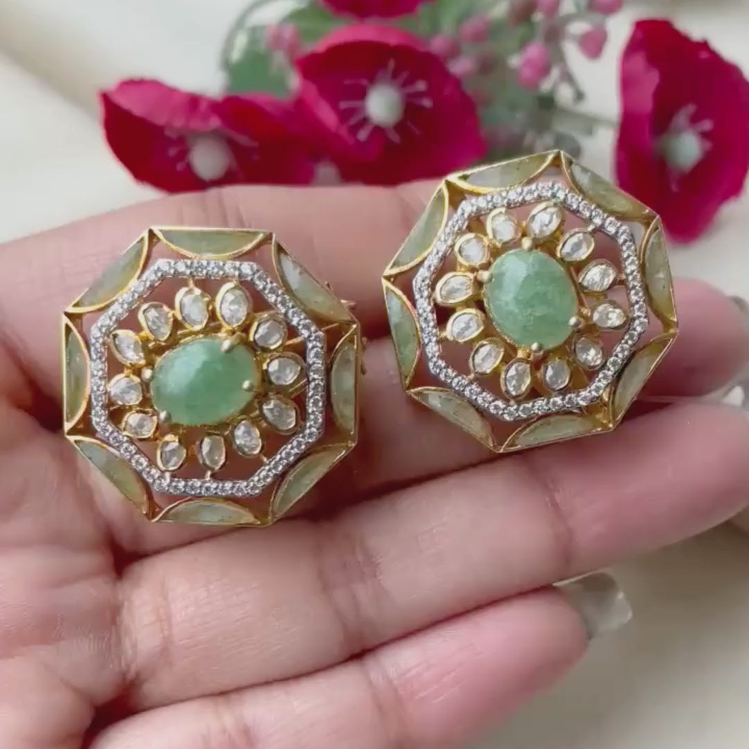 These earrings look so royal! The octagon shape is unique and the emerald adds a perfect contrast. I wore them for a sangeet night and got so many compliments.