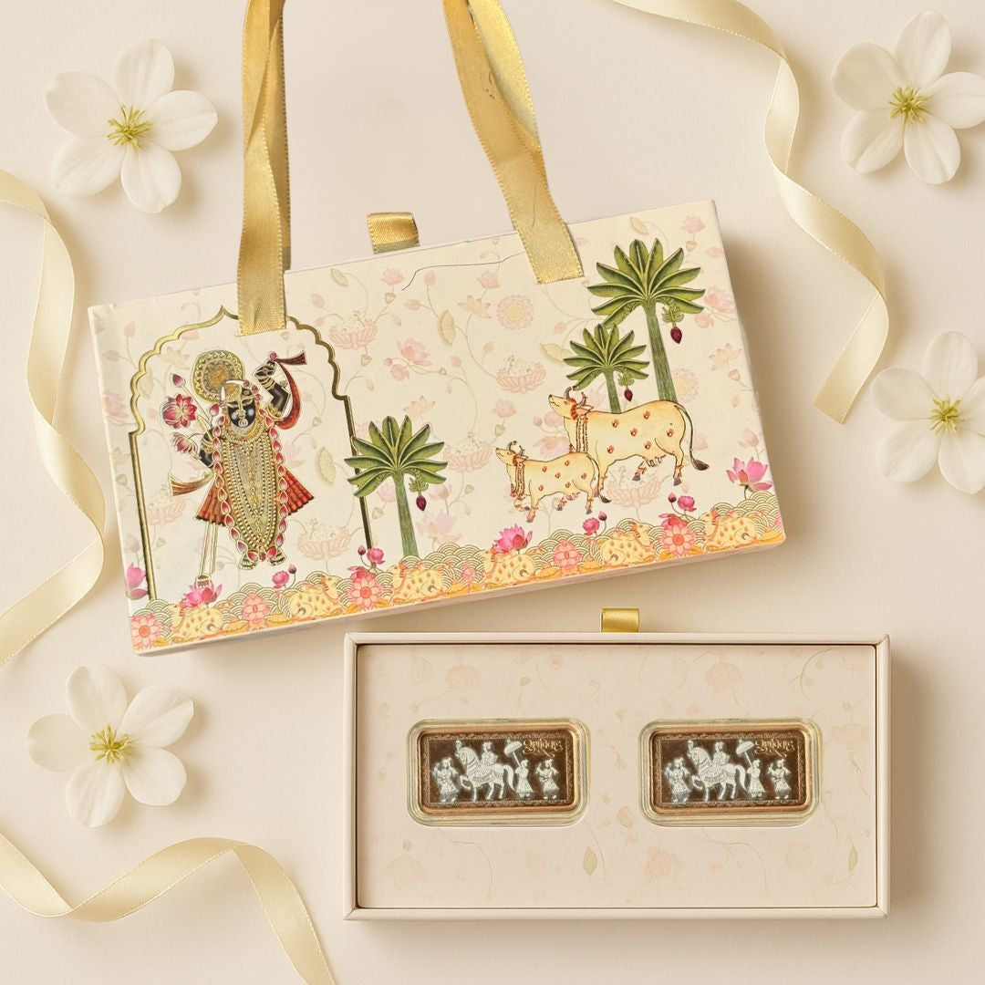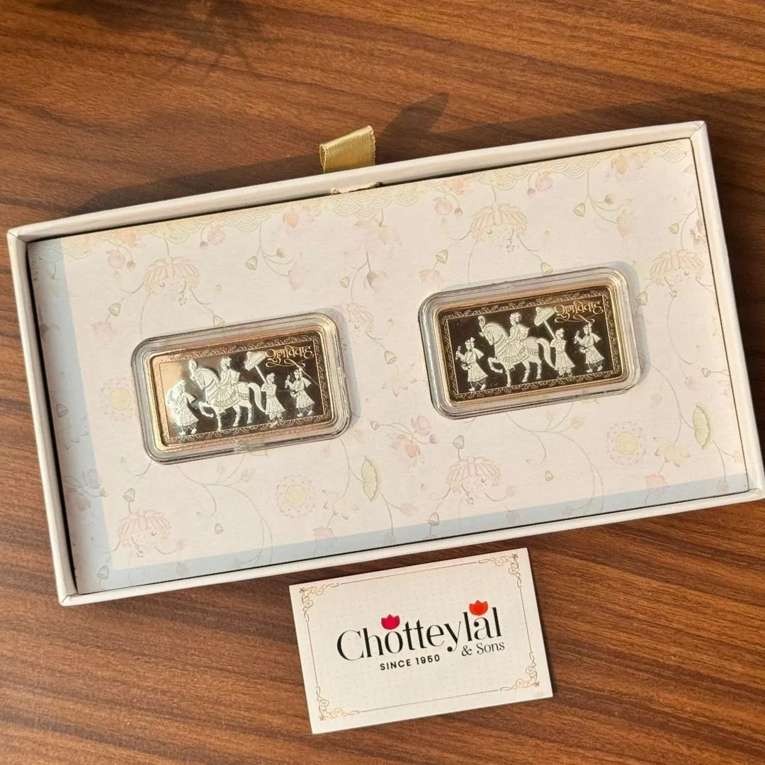 When it comes to timeless gifting, nothing compares to the elegance and purity of a silver coin. Chotteylal & Sons—serving trust and tradition since 1950—brings you the Aashirwaad 20 gm Silver Coin Box Set, a perfect blend of artistry, purity, and emotion. The set features two 10 gm Baraati Design silver coins made from 999 pure silver, beautifully encased in a premium Baraati design box. Whether it’s for a wedding, anniversary, housewarming, or festive celebration, this silver coin set embodies auspiciousness, prosperity, and heartfelt blessings. Each coin is a symbol of refined craftsmanship and purity, making it a thoughtful gift that carries both value and emotion for generations to come.